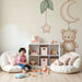 Ez a baba szobai tapéta tökéletes arra, hogy serkentse a képzeletet, miközben nyugodt környezetet biztosít. Kombinálja természetes fa kiegészítőkkel és puha textíliákkal egy harmonikus és kényelmes tér létrehozásához.