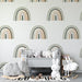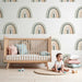 Nursery room wallpaper | Soft pastel rainbow and sage green