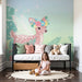 A pasztell színek és a virágos minták frissességet és békét hoznak, míg a trópusi levelek körbeveszik az őzet, hozzáadva egy természetes dimenziót a térhez. Minden részlet, a virágok finom árnyalataitól a levelek puha textúrájáig, gondosan megtervezett, hogy harmonikus és barátságos hatást érjen el.