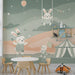 Trasforma la camera del tuo bambino in un mondo magico con questa carta da parati per bambini che raffigura un incantevole circo popolato da simpatici conigli. Ogni personaggio, dal coniglio giocoliere al coniglio che si dondola felicemente, porta un tocco di allegria e meraviglia. I colori tenui e pastello creano un'atmosfera rilassante, ideale per il sonno e i sogni.