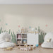 Le sfumature di verde delle erbe, accompagnate da piccoli cerchi blu e rosa, aggiungono un tocco giocoso pur rimanendo raffinate. Questo arredamento minimalista favorisce un ambiente tranquillo e accogliente, perfetto per stimolare l'immaginazione del tuo piccolo.
