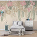 Carta da parati bambini | Fiori tropicali e fogliame delicato