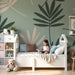 Carta da parati bambini | Foglie tropicali su sfondo morbido