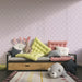 Le stelle, disposte armoniosamente, aggiungono una nota giocosa pur restando eleganti. Il tono lavanda, sia tenero che luminoso, si integra perfettamente in un ambiente moderno o classico, offrendo uno sfondo sereno per i momenti di gioco e riposo.
