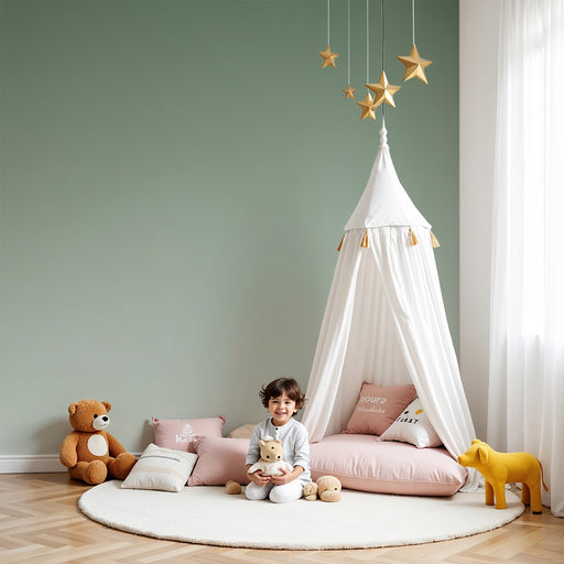 KidsWallTrasforma la camera del tuo bambino in un nido di dolcezza con questa carta da parati per bambini delicatamente decorata con fiori sospesi e stelle...