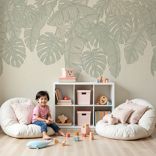 KidsWallRinnova la camera del tuo bambino in un dolce bozzolo con questa carta da parati per bambini decorata con splendide foglie di monstera. Le tonalità...