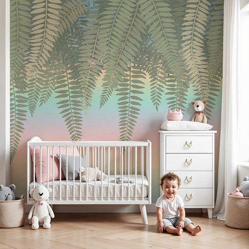 Visualizza tutti i dettagliCarta da parati bambini | Foglie di felce e sfumature pastello