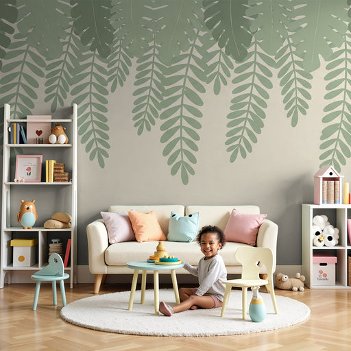 KidsWallRinnova la camera del tuo bambino in un grazioso bozzolo con questa carta da parati per bambini dai delicati motivi di foglie di felce. Le fronde, ...