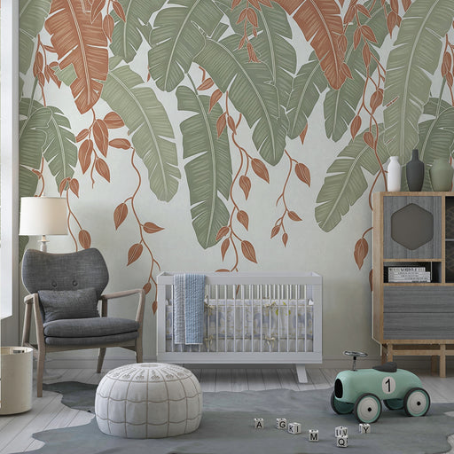 KidsWallRinnova la camera del tuo bambino in un dolce bozzolo con questa carta da parati per bambini decorata con foglie tropicali. Le foglie lussureggiant...