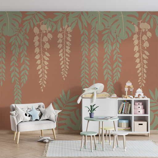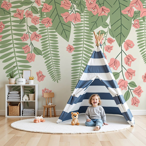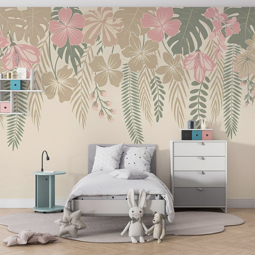 KidsWallRinnova la camera del tuo bambino in un dolce bozzolo con questa carta da parati per bambini con incantevoli motivi di fiori sospesi e foglie tropi...