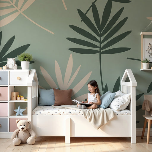KidsWallRinnova la camera del tuo bambino in un dolce bozzolo con questa carta da parati per bambini dai motivi incantevoli. Delicate foglie tropicali cado...