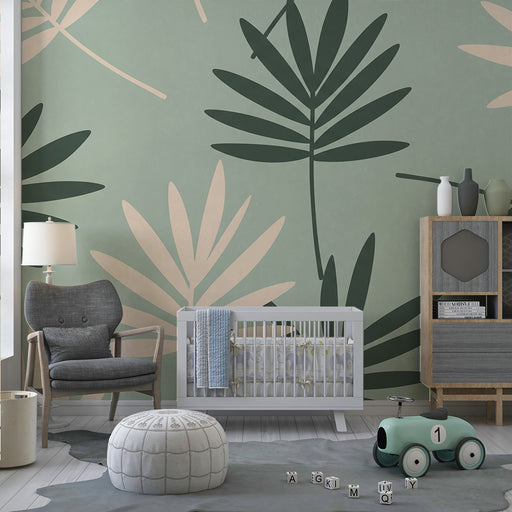 Visualizza tutti i dettagliCarta da parati bambini | Foglie tropicali verdi delicate