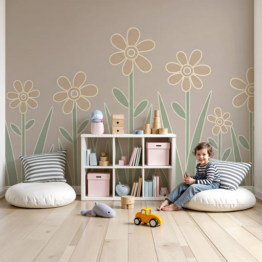 KidsWallPorta un tocco di freschezza e allegria alla camera del tuo bambino con questa carta da parati per bambini decorata con delicate margherite bianche...