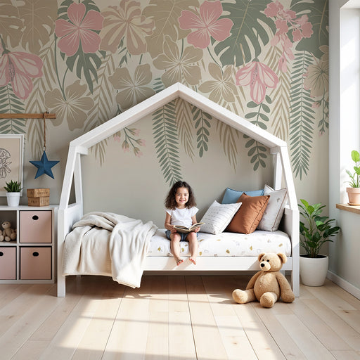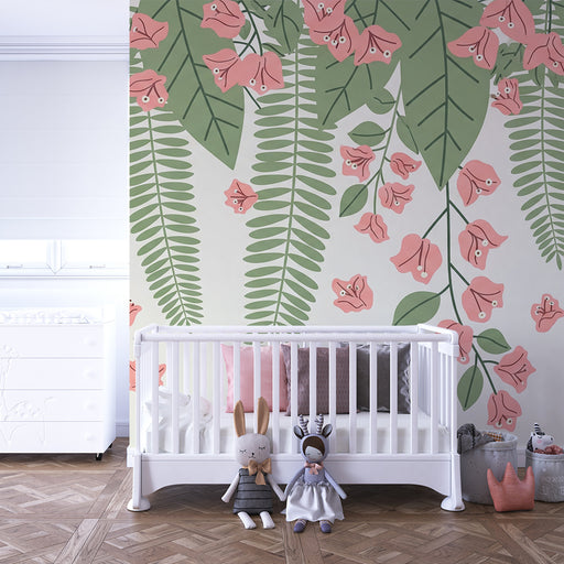 KidsWallTrasforma la camera del tuo bambino in uno spazio di tranquillità con questa carta da parati per bambini dai motivi floreali esotici. I delicati fi...