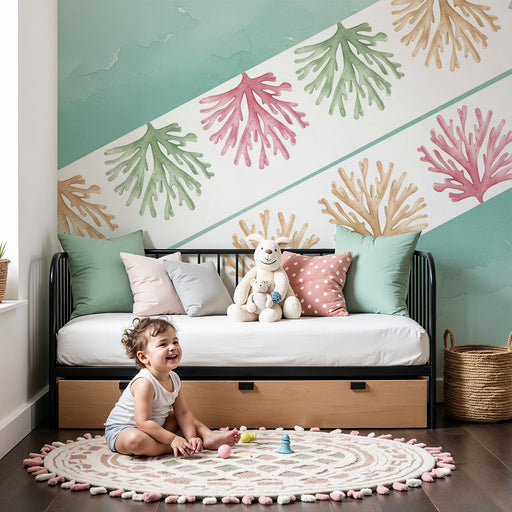 KidsWallImmergiti in un rilassante mondo marino con questa carta da parati per bambini, che mette in risalto delicati coralli dalle tonalità tenui di rosa,...