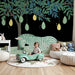 Carta da parati bambini | Zebra tranquilla sotto un albero con foglie sospese