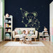 Abbinare questa carta da parati per la camera del bambino con elementi d'arredo in legno naturale e accessori morbidi per un ambiente armonioso e accogliente. Crea un bozzolo in cui ogni notte diventa un'avventura sotto le stelle.