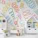 Porta un tocco di allegria e dinamismo alla camera del tuo bambino con la nostra carta da parati con allegre spirali multicolori. Questo motivo giocoso e vibrante presenta spirali in una varietà di colori vivaci, perfetti per stimolare l'immaginazione e creare un'atmosfera allegra.