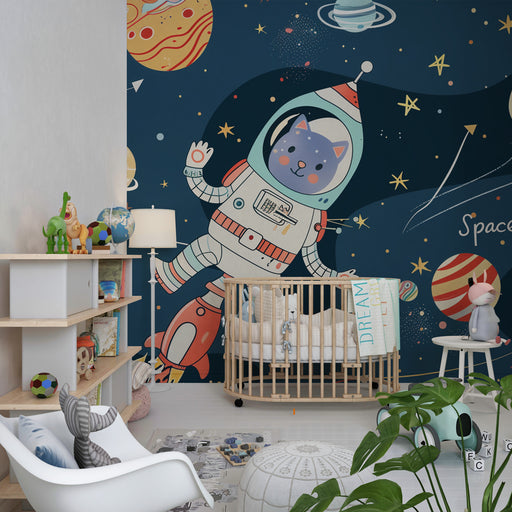 KidsWallOffri a tuo figlio un viaggio intergalattico con questa carta da parati bambini. Immergiti in un decor affascinante dove un gatto astronauta fluttu...