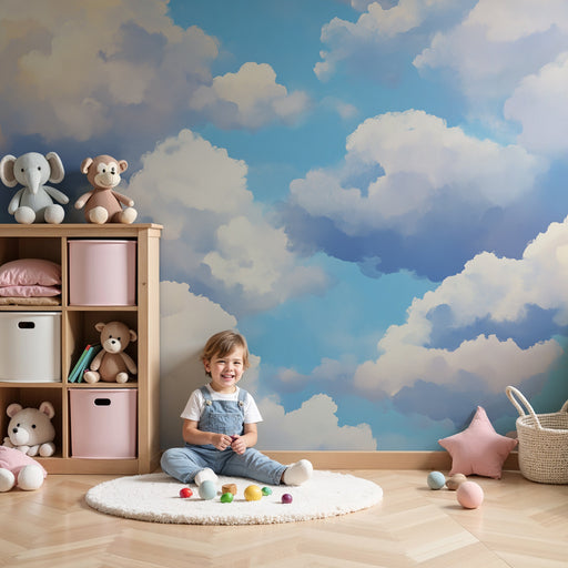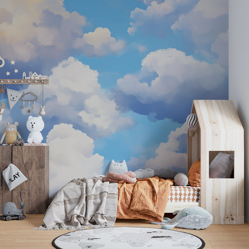 Visualizza tutti i dettagliCarta da parati bambini | Cielo blu con nuvole soffici e luminose