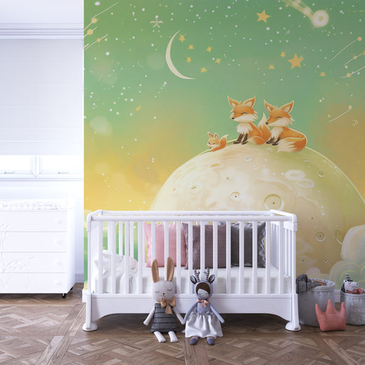 KidsWallImmergi il tuo bambino in un sogno stellato con questa carta da parati bambini. Sotto un cielo dai toni dolci e luminosi, una famiglia di volpi sog...