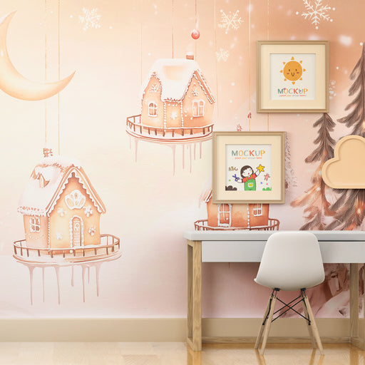 Visualizza tutti i dettagliCarta da parati bambini | Villaggio sospeso di pan di zenzero, magia invernale fiabesca