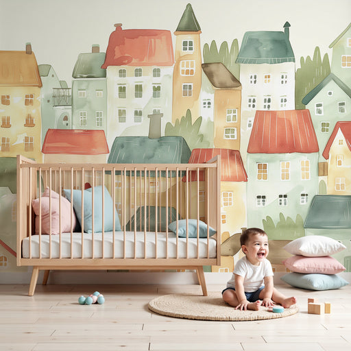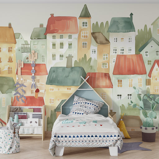 KidsWallOffri a tuo figlio un viaggio in un villaggio incantato con questa carta da parati bambini. Ogni casa dai tetti colorati sembra raccontare una stor...