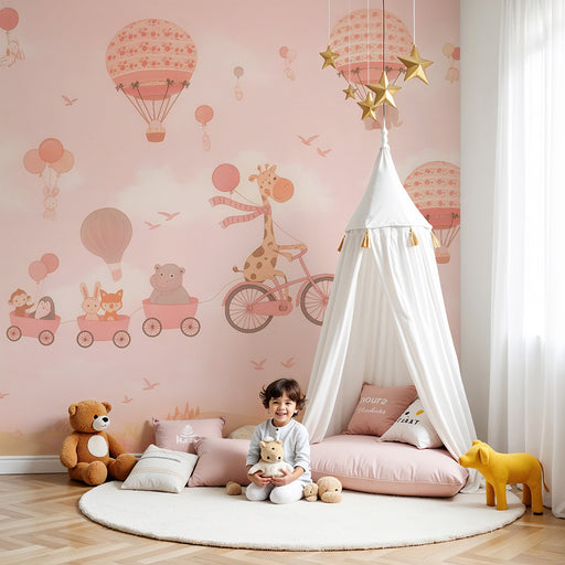 KidsWallTransformez la chambre de votre enfant en un monde de rêve avec notre papier peint animaux en montgolfières et vélo enchanté. Ce design ludique pré...