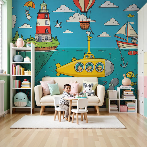 KidsWallTrasforma la camera dei tuoi bambini in un paradiso soleggiato con la nostra carta da parati evasione marina. Questo design vibrante cattura l'ener...