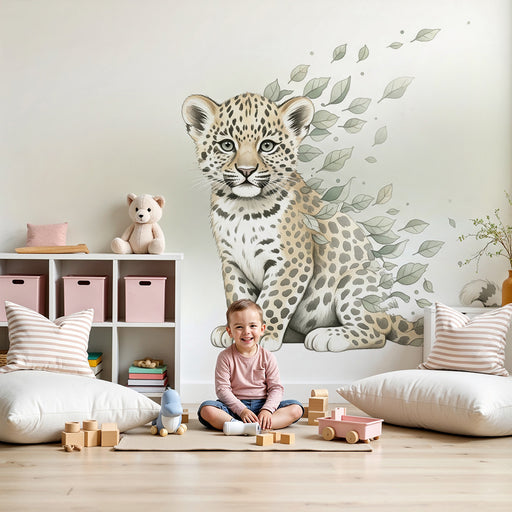 Visualizza tutti i dettagliCarta da parati bambini | Bambino leopardo e foglie leggere