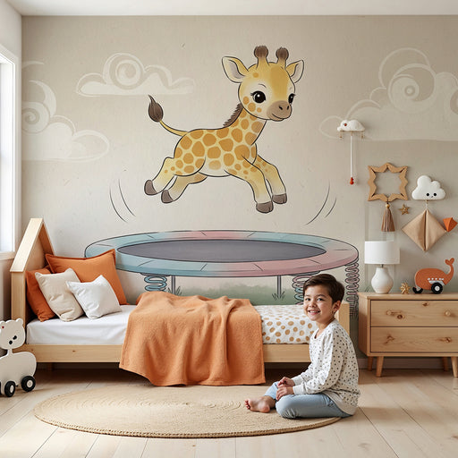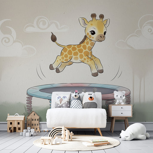 Visualizza tutti i dettagliCarta da parati bambini | Giraffa felice su un trampolino