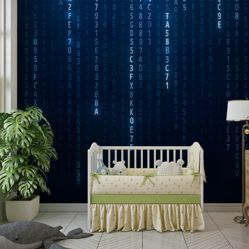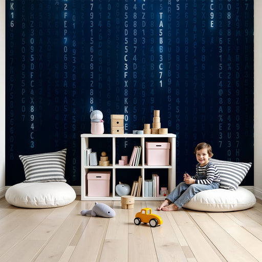 KidsWallTrasforma la camera dei tuoi bambini con il nostro carta da parati codice mistico digitale. Questo design intrigante presenta linee di numeri e let...