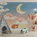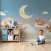 Carta da parati bambini | Animali addormentati tra le nuvole sotto la luna