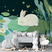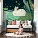 Carta da parati bambini | Coniglio addormentato su una ninfea sotto le stelle