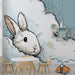 Le nuvole soffici circondano il piccolo coniglio, creando un'atmosfera serena e confortante. Le tonalità tenui di blu e bianco portano un tocco di leggerezza, mentre i dettagli delicati del coniglio aggiungono una nota di tenerezza. Ogni elemento è progettato per favorire un ambiente rilassante, ideale per il sonno e i sogni d'avventura.