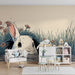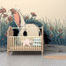 Carta da parati bambini | Coniglio curioso che emerge da un giardino fiorito