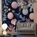 Scopri la nostra carta da parati foglie astratte e forme geometriche, ideale per ravvivare la camera dei tuoi bambini con motivi moderni e artistici. Questa carta da parati combina foglie stilizzate con forme rotonde e organiche in tonalità tenui di rosa e blu su uno sfondo scuro per un effetto chic e creativo.