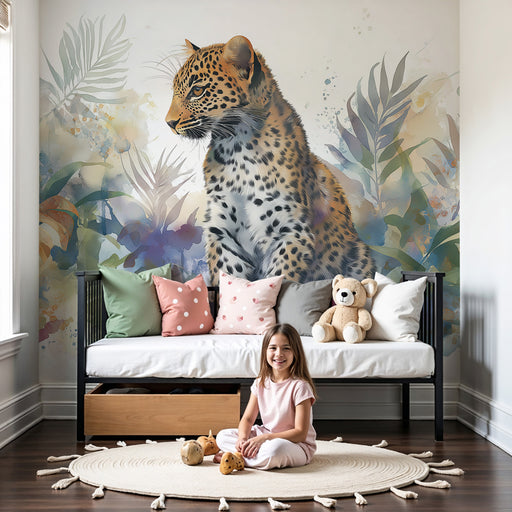 KidsWallTrasforma la camera dei tuoi bambini in un'avventura selvaggia con questa bellissima carta da parati per bambini che raffigura eleganti leopardi. S...