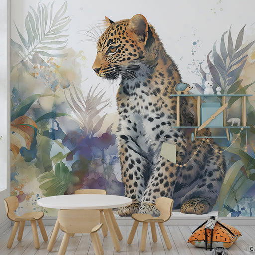 KidsWallTrasforma la camera dei tuoi bambini in un vero santuario animale con questa carta da parati per bambini che rappresenta un adorabile piccolo leopa...