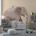 Carta da parati bambini | Elefante carino con un piccolo uccello