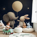 Il palloncino fluttuante, simbolo di gioia e fantasia, aggiunge un tocco giocoso a questo incantevole decoro. Le stelle scintillanti sullo sfondo portano una sensazione di serenità, invitando al relax e alla fantasia. Ogni dettaglio è accuratamente progettato per stimolare l'immaginazione e risvegliare la curiosità del tuo bambino.