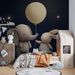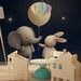 Carta da parati bambini | Elefante e coniglio sotto le stelle con un palloncino