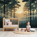 Carta da parati bambini | Foresta incantata nebbiosa al tramonto