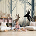 Immergi il tuo bambino in un universo naturale rilassante con questa carta da parati per bambini che rappresenta una suggestiva scena di foresta. Nel cuore di una foresta misteriosa, un giovane cerbiatto e un maestoso cervo si incontrano tra alberi slanciati e erbe delicate. Questo incantevole scenario invita alla meraviglia e alla scoperta della fauna selvatica.