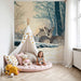 Ogni elemento, dagli alberi maestosi ai fiocchi di neve che cadono, è accuratamente illustrato per offrire un aspetto naturale e affascinante. Questo scenario coinvolgente stimola l'immaginazione e invita all'evasione, consentendo al tuo bambino di sognare avventure nel cuore della natura.