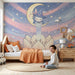 Le delicate sfumature di rosa, blu e crema creano un'atmosfera rilassante, ideale per il sonno del tuo piccolo. Le stelle scintillanti e il cielo nuvoloso aggiungono un tocco di magia, stimolando l'immaginazione e la curiosità del tuo bambino.
