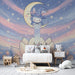 Questa carta da parati per la camera del bambino è perfetta per creare uno spazio caldo e accogliente. Abbinatela a mobili in legno chiaro e accessori morbidi per un ambiente armonioso in cui ogni notte diventa un'avventura magica.