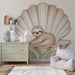Trasforma la stanza del tuo bambino in uno spazio accogliente con questa carta da parati per bambini che raffigura un adorabile bradipo comodamente sdraiato in una conchiglia. Questo design unico porta una nota di dolcezza e serenità, perfetto per creare un ambiente rilassante per i più piccoli.