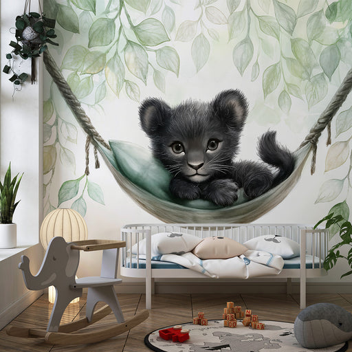 Visualizza tutti i dettagliCarta da parati bambini | Piccolo leoncino in un'amaca