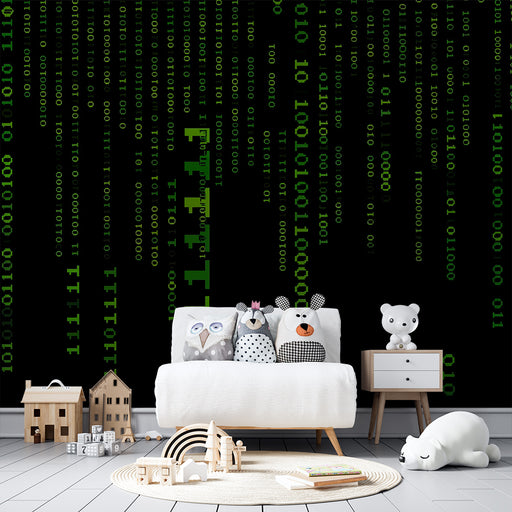 KidsWallPorta un tocco futuristico alla camera dei tuoi bambini con la nostra carta da parati codice numerico verde. Ispirato ai motivi della matrice, ques...